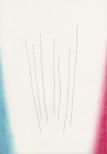 Neun rote Linien, 2015, Buntstift auf Papier, 30 x 21 cm