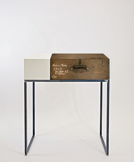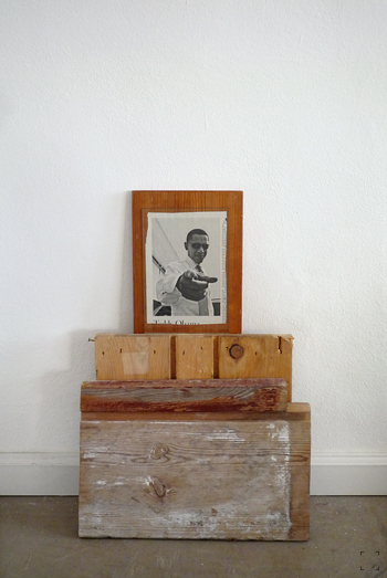 o.T., 2012, Holz, Metall, Papier, Farbe, ca. 27 x 49 x 13 cm